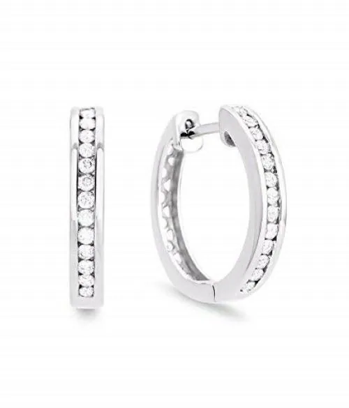 ELOISH Silver Color Sterling Silver CZ Studded Huggie Earrings for Women [NHUG1]