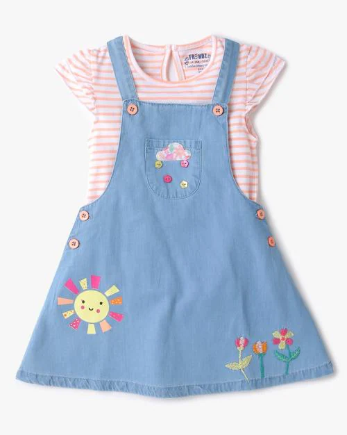 Embroidered Dungaree Dress with T-Shirt
