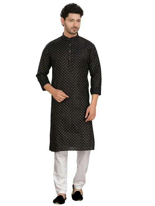Encino Mens Black Printed Cotton Angad Collection Kurta Suit