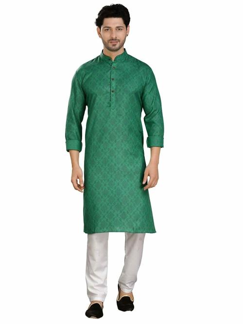 Encino Mens Green Printed Cotton Angad Collection Kurta Suit
