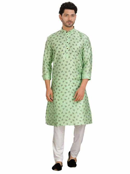 Encino Mens Light Green Printed Silk Jashn Collection Kurta Suit