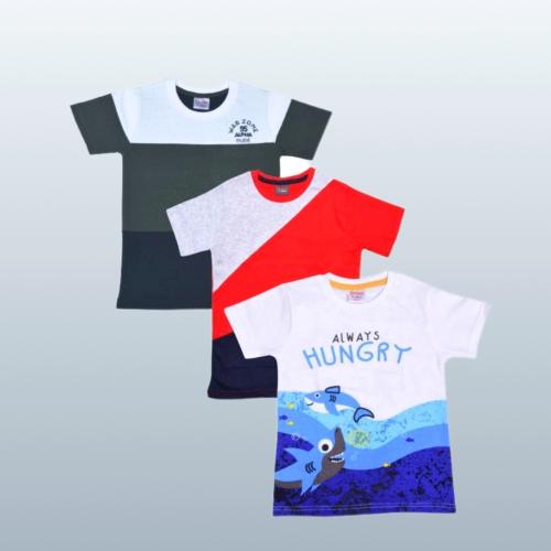 Esteem Kids Colorblock and Printed combo Cotton Boys T shirt (Pack of 3)
