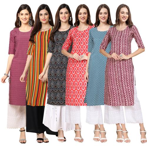 Ethnic Basket Women's Crepe Digital Print Straight Kurta [pack of 6]{MV-376-356-373-346-351-347-XXL}