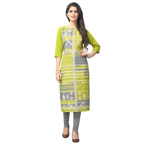 Material:100% American Crepe || Pattern: Digital Printed || Color: Green || Type: Straight Kurti || Available Size: S, M, L, XL, XXL, 3XL, 4XL
