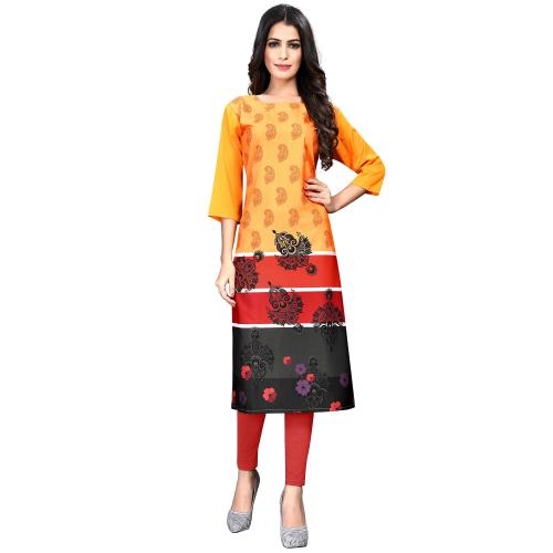 Material:100% American Crepe || Pattern: Digital Printed || Color: Multi || Type: Straight Kurti || Available Size: S, M, L, XL, XXL, 3XL, 4XL