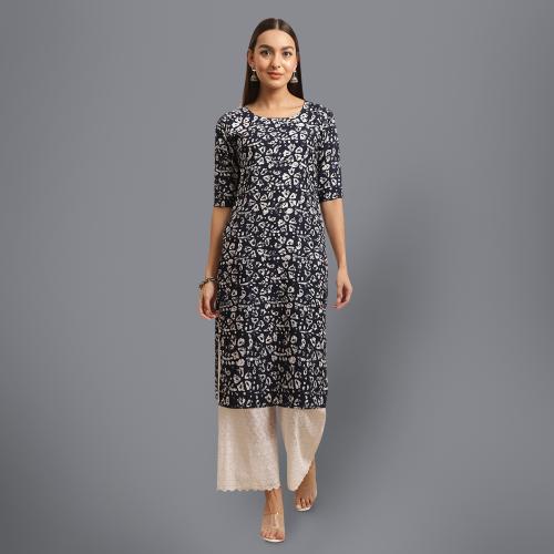 Ethnic Basket Women's Crepe Navy Blue Floral Printed Straight Kurti