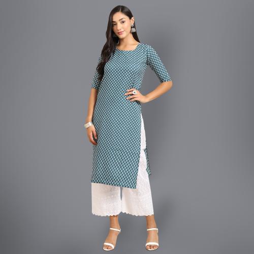 Ethnic Basket Women's Crepe Turqouise Color Floral Printed Straight Kurti