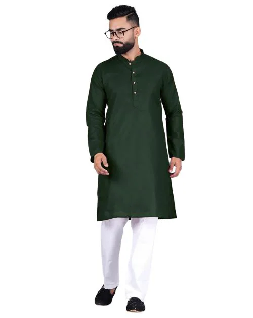 Ethnicbasket Men Green Solid Cotton Kurta
