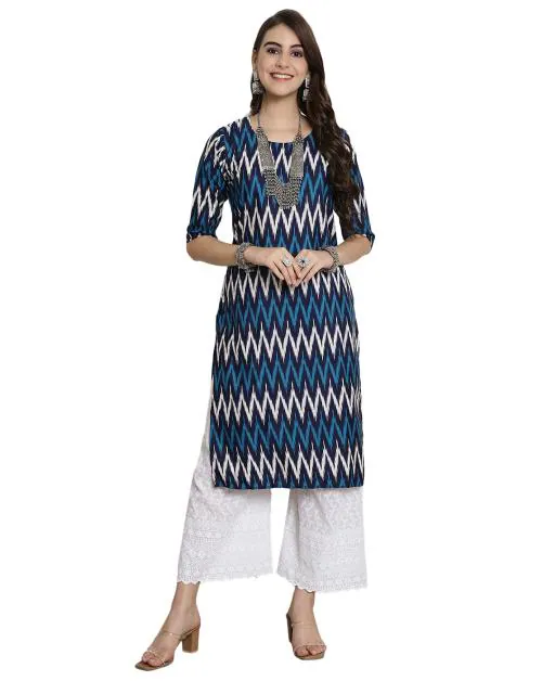 Material: Crepe || Pattern: Printed|| Type: Straight Kurti || Color: Blue