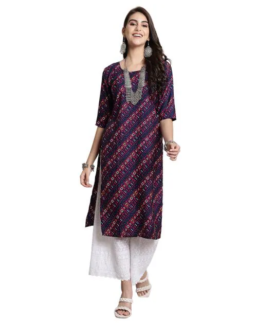 Ethnicbasket Women's Multicolor Printed Crepe Straight Kurta