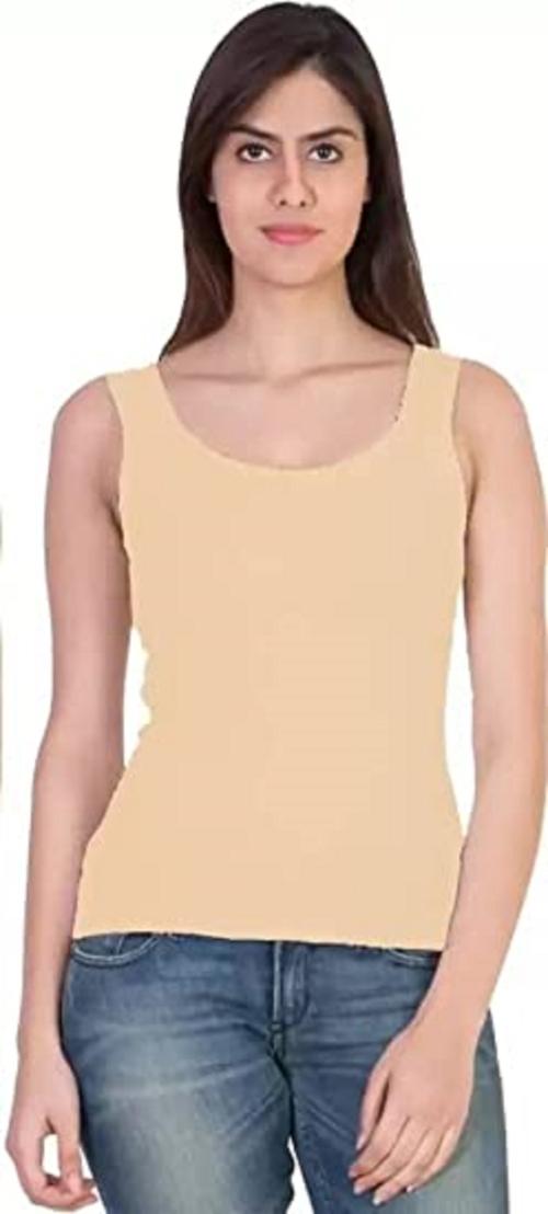 F FASHIOL.COM Cotton U Neck Ladies Spaghetti Tank Top Vest Camisole Sando for Women(30-34) (Skin)