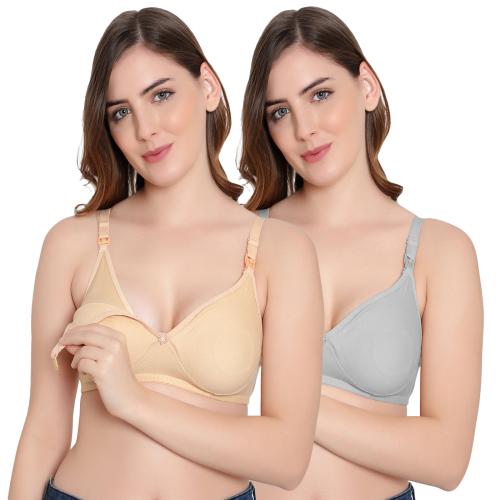 F Fashiol.com Pack Of 2 Cotton Multicolor Seamless Non Padded Baby feeding Bra For Women/Girls | Non Padded baby Feeding bra | pack of 2 |Seamless