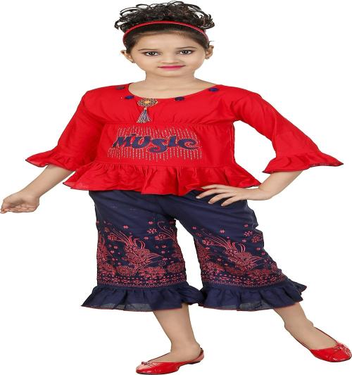 F2CLUB Girls Party(Festive) Top Pant (Red)