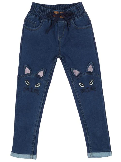 F2M Blue Embroidered High Waist Slim Fit Girls jeans