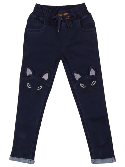 F2M Dark Blue Embroidered High Waist Slim Fit Girls jeans
