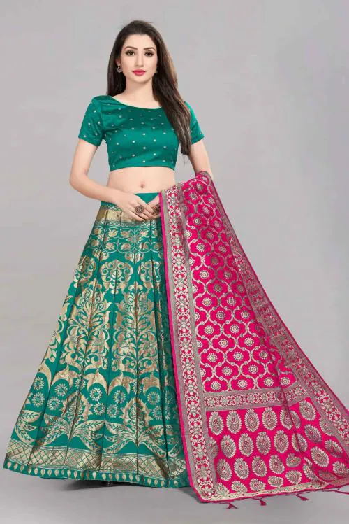 Fabcartz Women Rama Self Design Jacquard Lehenga Choli