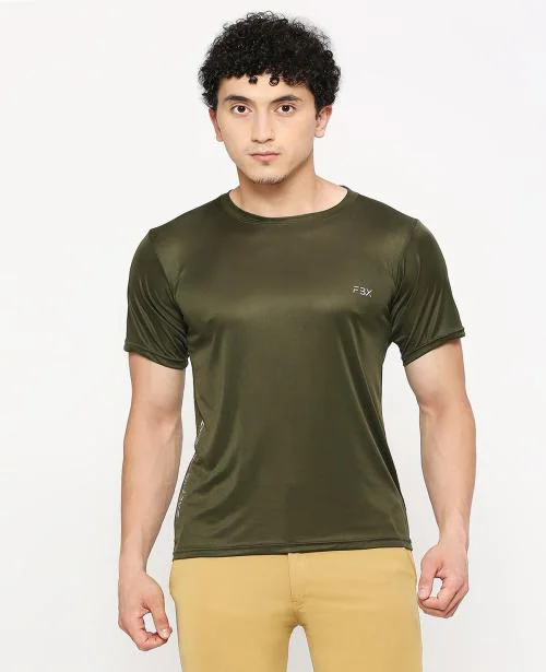 FABEX Solid Men Round Neck Dark Green T-Shirt