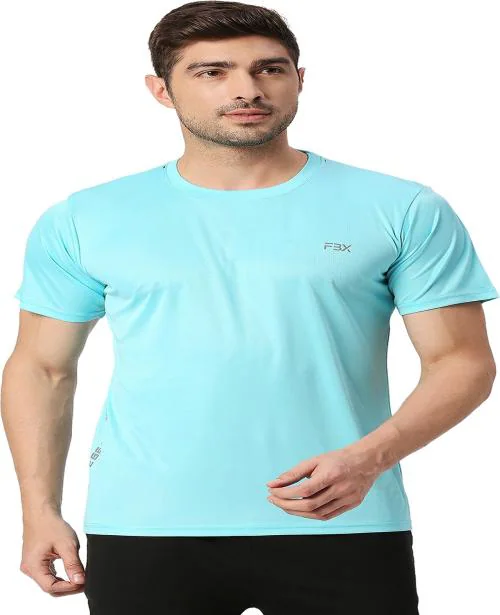FABEX Solid Men Round Neck Light Blue T-Shirt