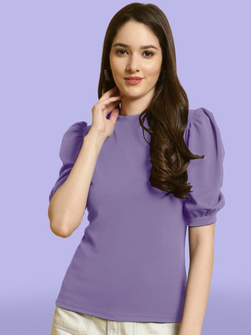 Fabflee Casual Regular Sleeves Solid Women Lavendar Top | Women Top | Tops For Women | Top | Crop Top | Ribbed Top
