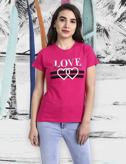 Fabflee Women Pink Typographic Pure Cotton Tshirt l women tshirt l tshirt for women | Women tshirt | Tops for women | T shirt for women | Women Tops | T shirt | Women | Tops