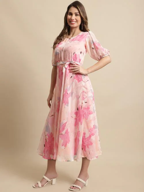 Fabflee Women Printed Georgette A-line Maxi Dress| Dresses| Women Dress| Party Dress| Maxi| Western Dress| Printed Gown| midi dresses| Dress for Women| Maxi Dress for women