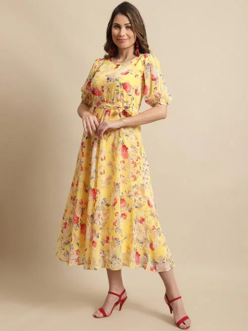Fabflee Women Printed Georgette A-line Maxi Dress| Dresses| Women Dress| Party Dress| Maxi| Western Dress| Printed Gown| midi dresses| Dress for Women| Maxi Dress for women