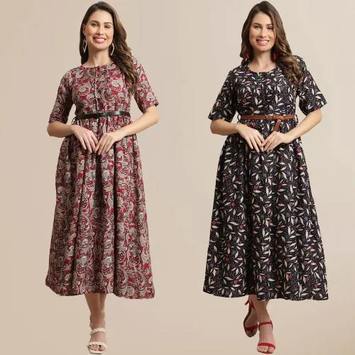 Fabflee Women Pack of 2 Printed Rayon A-line Dress| Dresses| Women Dress| Party Dress| Maxi| Western Dress| Printed Gown| midi dresses| Dress for Women| Maxi Dress for women