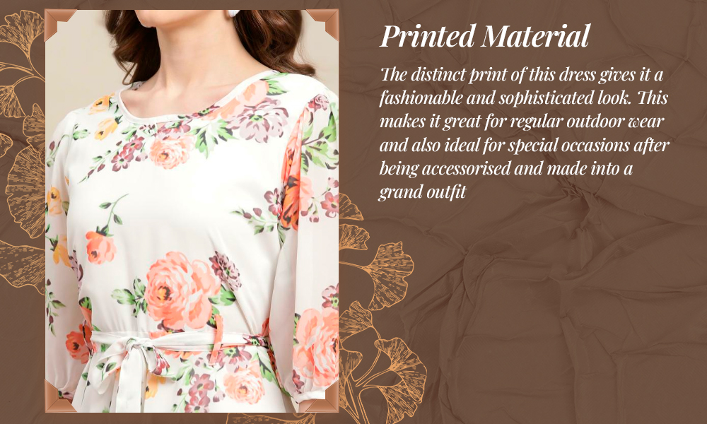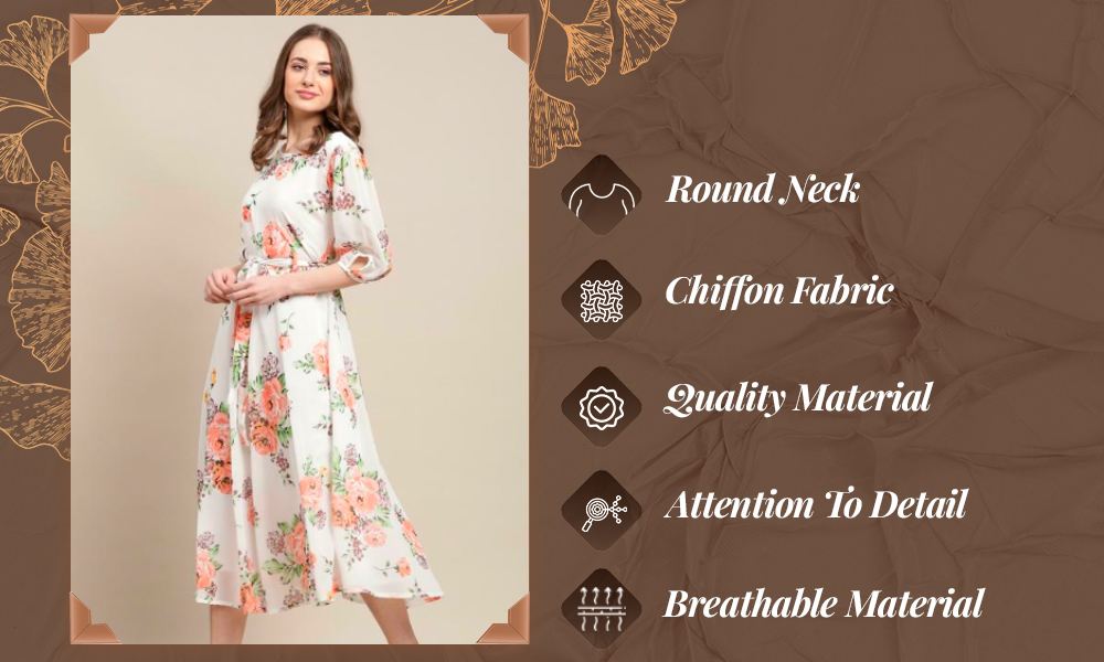 Fabflee Women's Off White Printed Chiffon A - Line Maxi DressDress| Dresses| Women Dress| Maxi Dress| One Piece| Women's Maxi Dress | Gown
