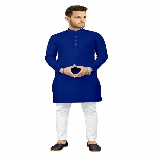 FABZOO MEN PLAIN NAVY BLUE KURTA PAJAMA WHITE SET SIZE (XXL)