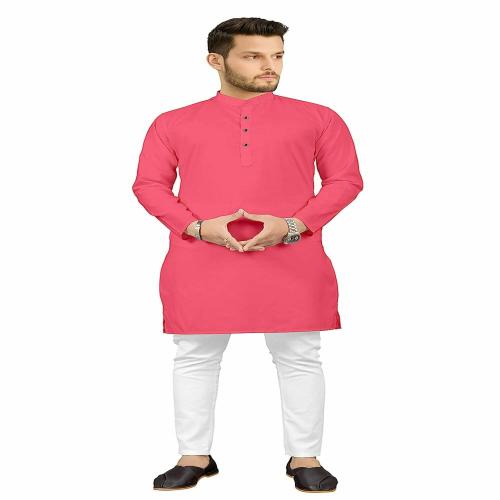 FABZOO MEN PLAIN PINK KURTA PAJAMA WHITE SET SIZE (XL)
