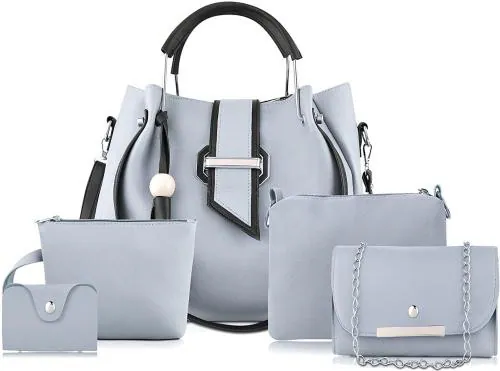 Fargo Grey Leatherette Handbag (Pack of 5) (Grey_LightCare-FGO-266-4),(30 x 26 x 11 CM)