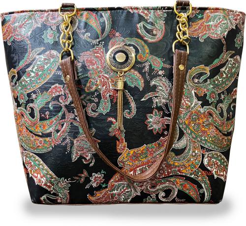 Fargo Multicolor PU Shoulder Bag Black-Flora-159,(35 x 25 x 6 CM)