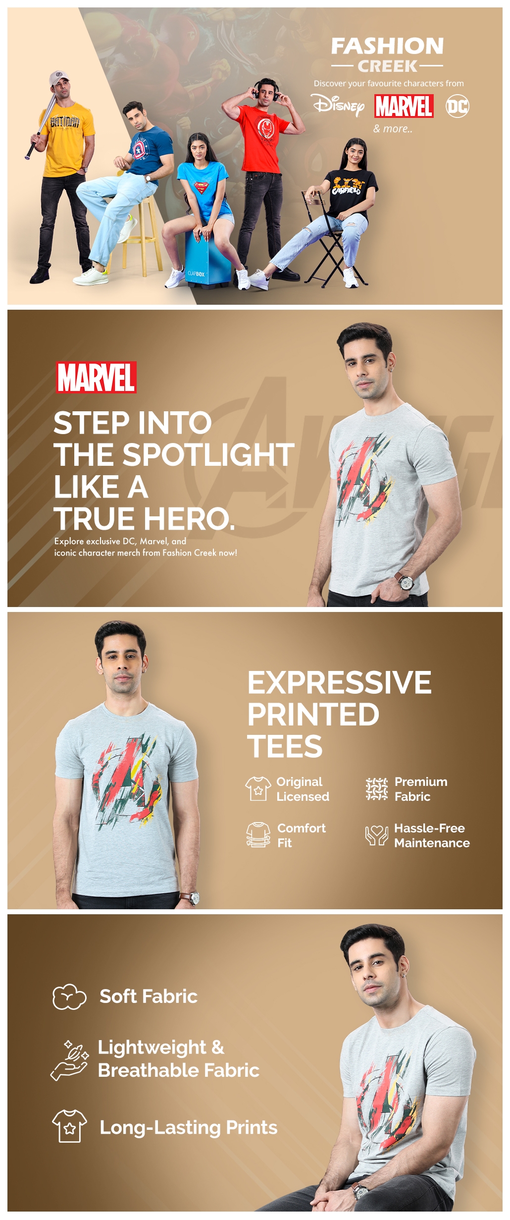 Fashion Creek | Men's Crew Neck Tshirt | Men's Wear | Character Merchandise | Avengers | GREY MELANGE
