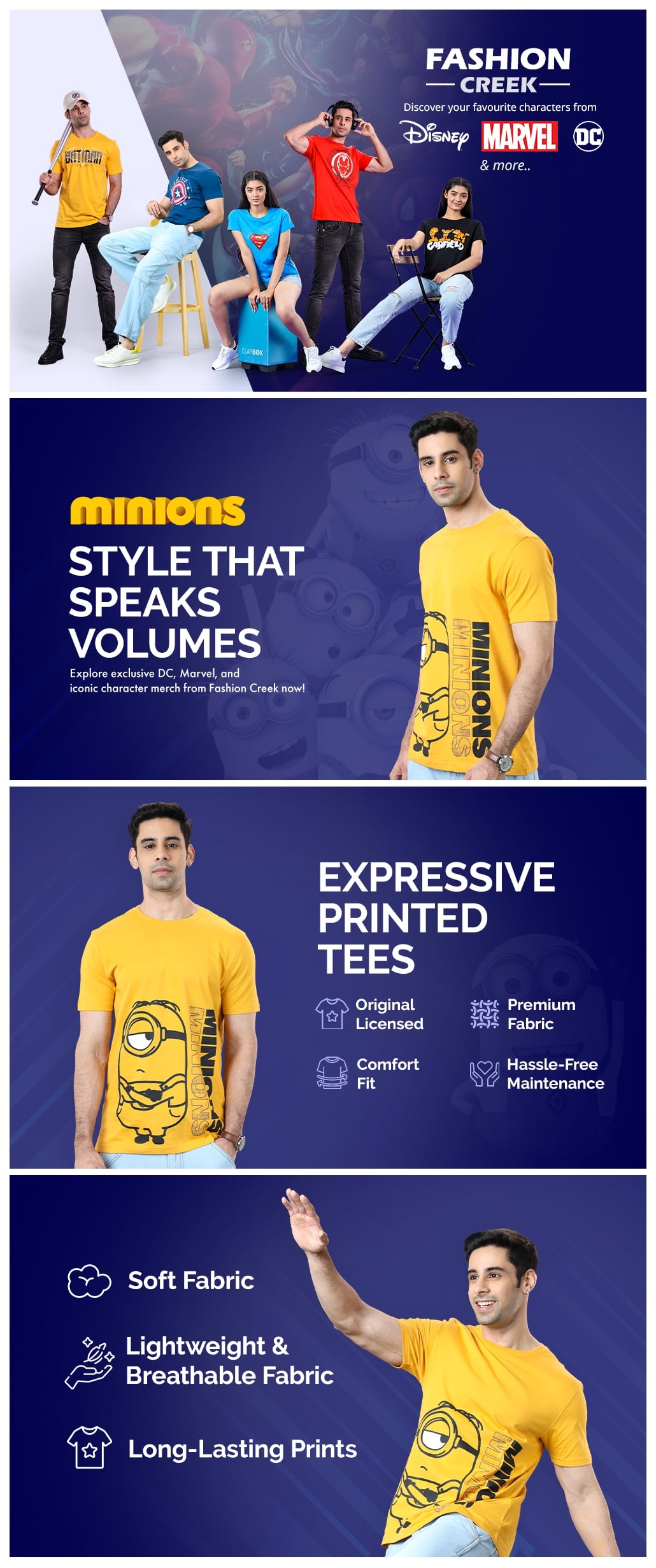 Fashion Creek | Men's Crew Neck Tshirt | Men's Wear | Character Merchandise | Minion | DARK YELLOW