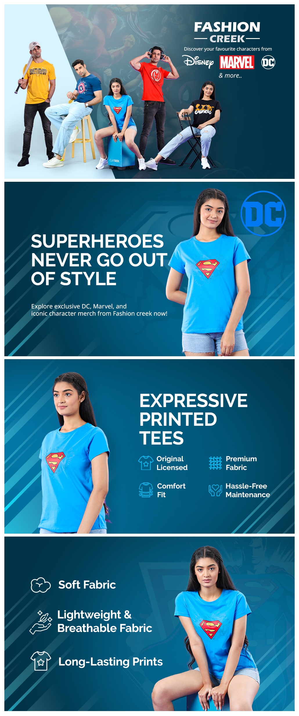Fashion Creek | Women's Crew Neck Tshirt | Women's Wear | Character Merchandise | Superman | ROYAL BLUE