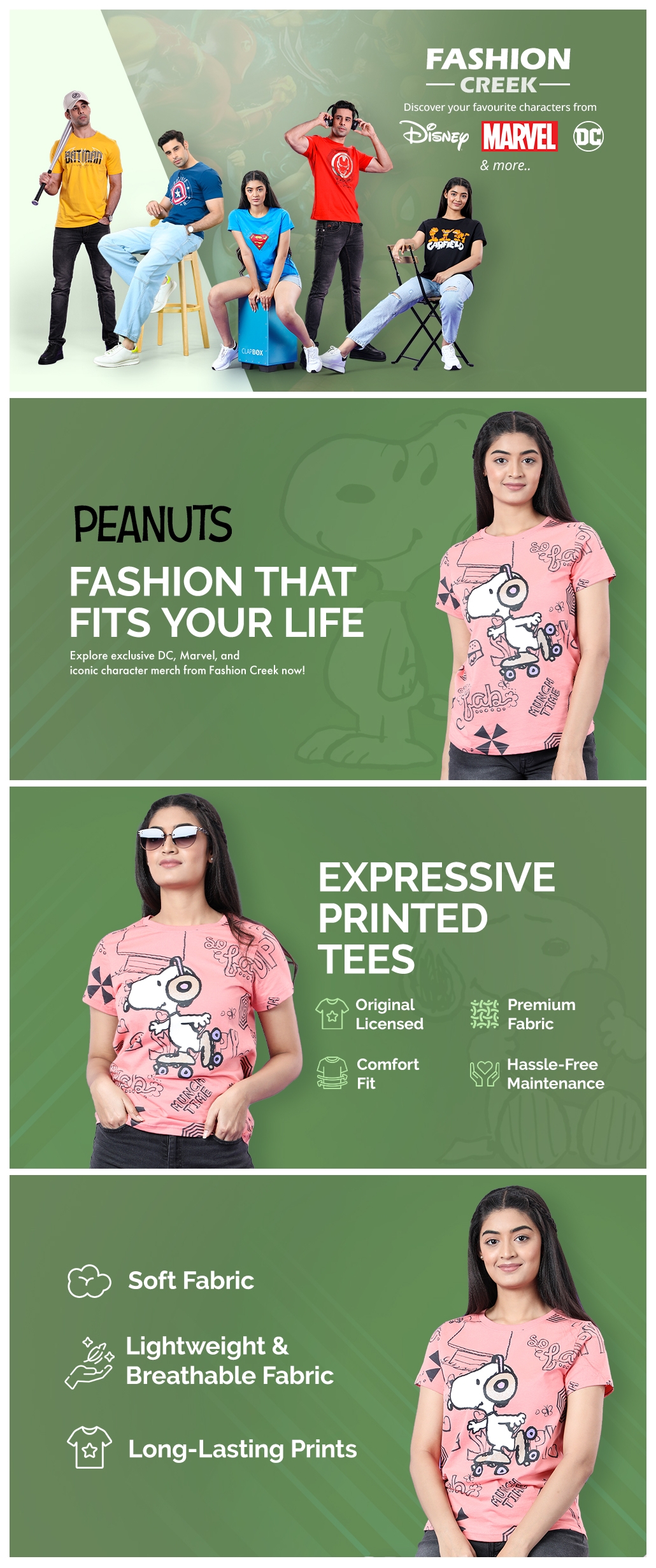Fashion Creek | Women's Crew Neck Tshirt | Women's Wear | Character Merchandise | Snoopy | PINK
