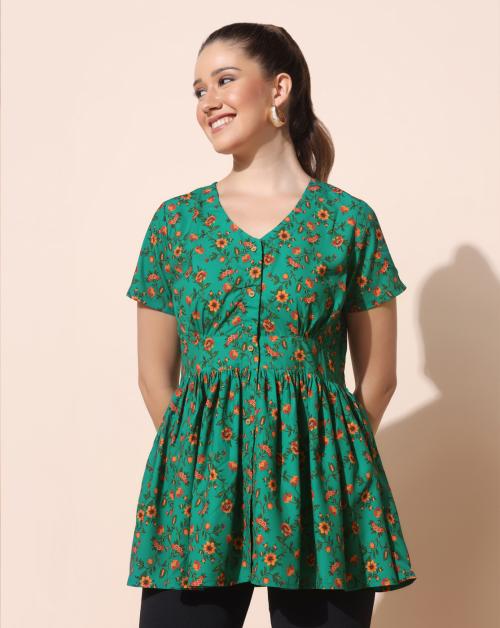 Fashion Dream Women Green Floral Printed Polyester Peplum Top | Women Top| Tops for Women|Women Floral Print Top| Printed Top| Women Casual Top | Women Peplum Top
