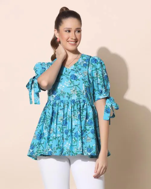 Fashion Dream Women Light Blue Floral Printed Polyester Top | Women Top| Tops for Women|Women Floral Print Top| Printed Top| Women Casual Top | Women Peplum Top