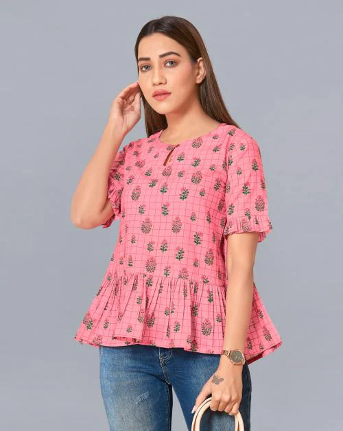 Fashion Dream Women Light Pink Floral Printed Polyester Top | Women Top| Tops for Women|Women Floral Print Top| Printed Top| Women Casual Top