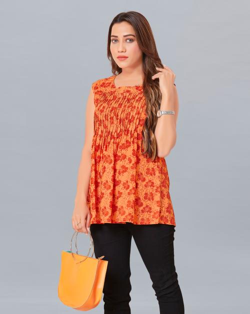 Fashion Dream Women Orange Floral Printed Polyester Top | Women Top| Tops for Women|Women Floral Print Top| Printed Top| Women Casual Top