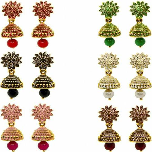 Fashion Frill Combo of 6 pair Small Colorful Jhumka Jhumki Earring Pearl Earrings For Women and Girls