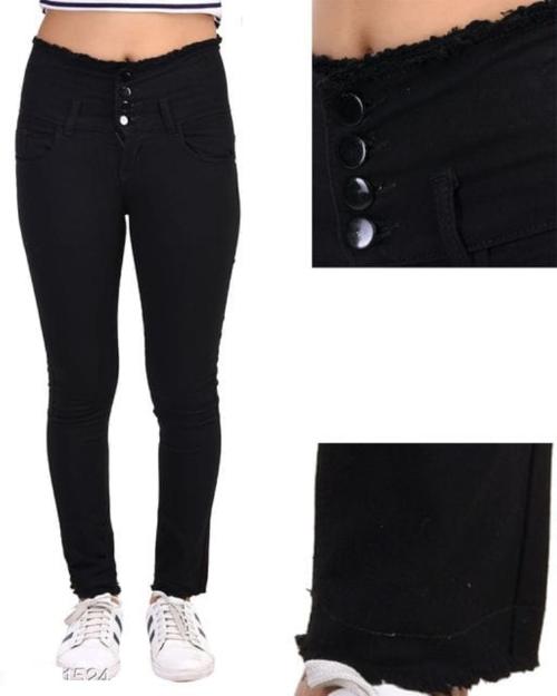 - Fit Type - Skinny Fit, Stretchable women jeans. Zip fly with button closure,2 Back Pockets. Style : Jeans; Pattern: Solid; Fabric: Denim.
