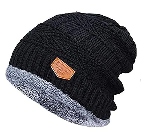 FASHNO Men's & Women's Black Color Woolen Caps/Hats, Winter Wear Caps (Pack of 1)