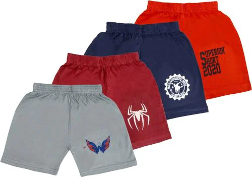 Fasla Boys Multicolor Graphic Cotton Blend Pack of 4 Shorts