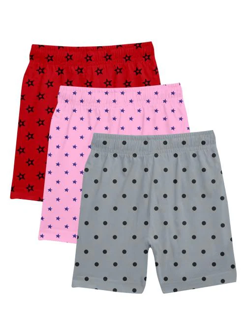 Fasla Girls Multicolor Printed Cotton Short Pack of 3 Shorts