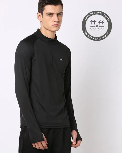 Regular Fit Fast Dry High-Neck T-Shirt with Raglan Sleeves