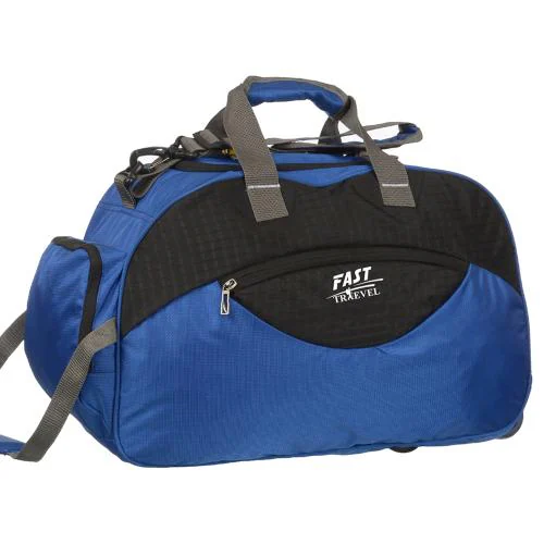 Fast Travel Light Weight Tuff Quality With Wheels Men And Women Blue Polyester Duffel Bag With Wheels 21 Inch