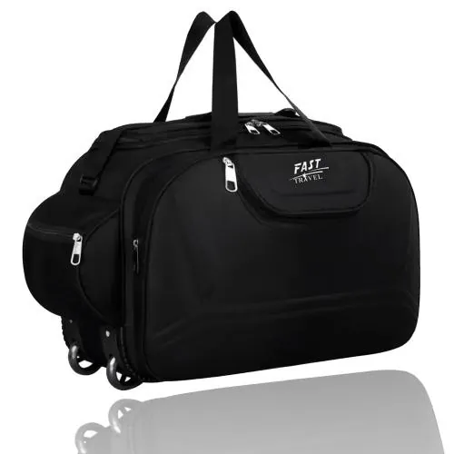 Fast Travel Men And Women Polyester Travel Duffel Bag With Wheels, 55 L (Black)