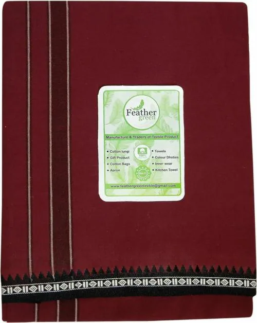 Feather Green Men Maroon Solid Pure Cotton Lungi - Free Size