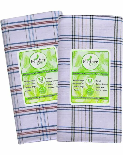 Feather Green Men Multicolor Checkered Cotton Blend Lungi - Free Size (Pack of 2)